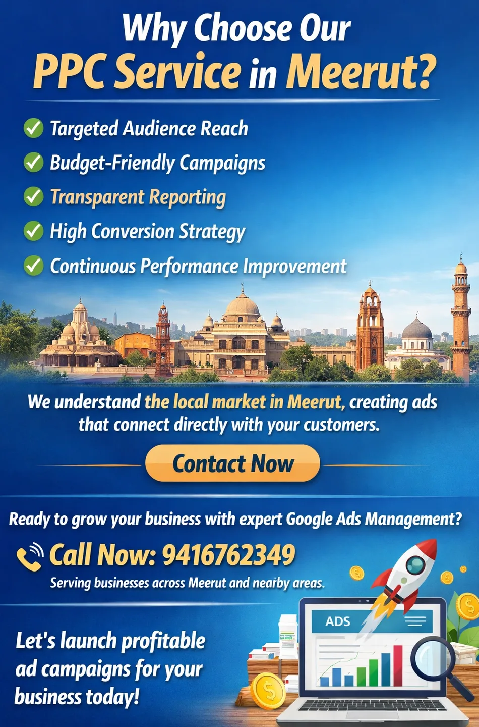 Are you looking for professional Google Ads & PPC Service in Meerut to generate instant leads and sales? We help businesses run high-converting ad campaigns that bring real customers to your website.