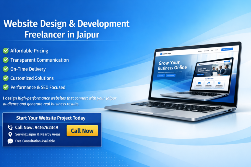 Are you searching for a professional Website Design & Development Freelancer in Jaipur to build a strong online presence? A well-designed website helps your business attract customers, generate leads, and increase sales. Your website works as your digital office. It should be fast, secure, and user-friendly.
