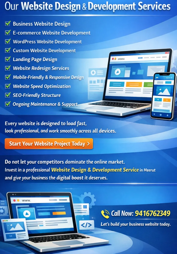 Are you looking for a professional Website Design & Development Service in Meerut to build a strong online presence? I provide modern, responsive, and SEO-friendly websites that help businesses attract customers and generate leads.